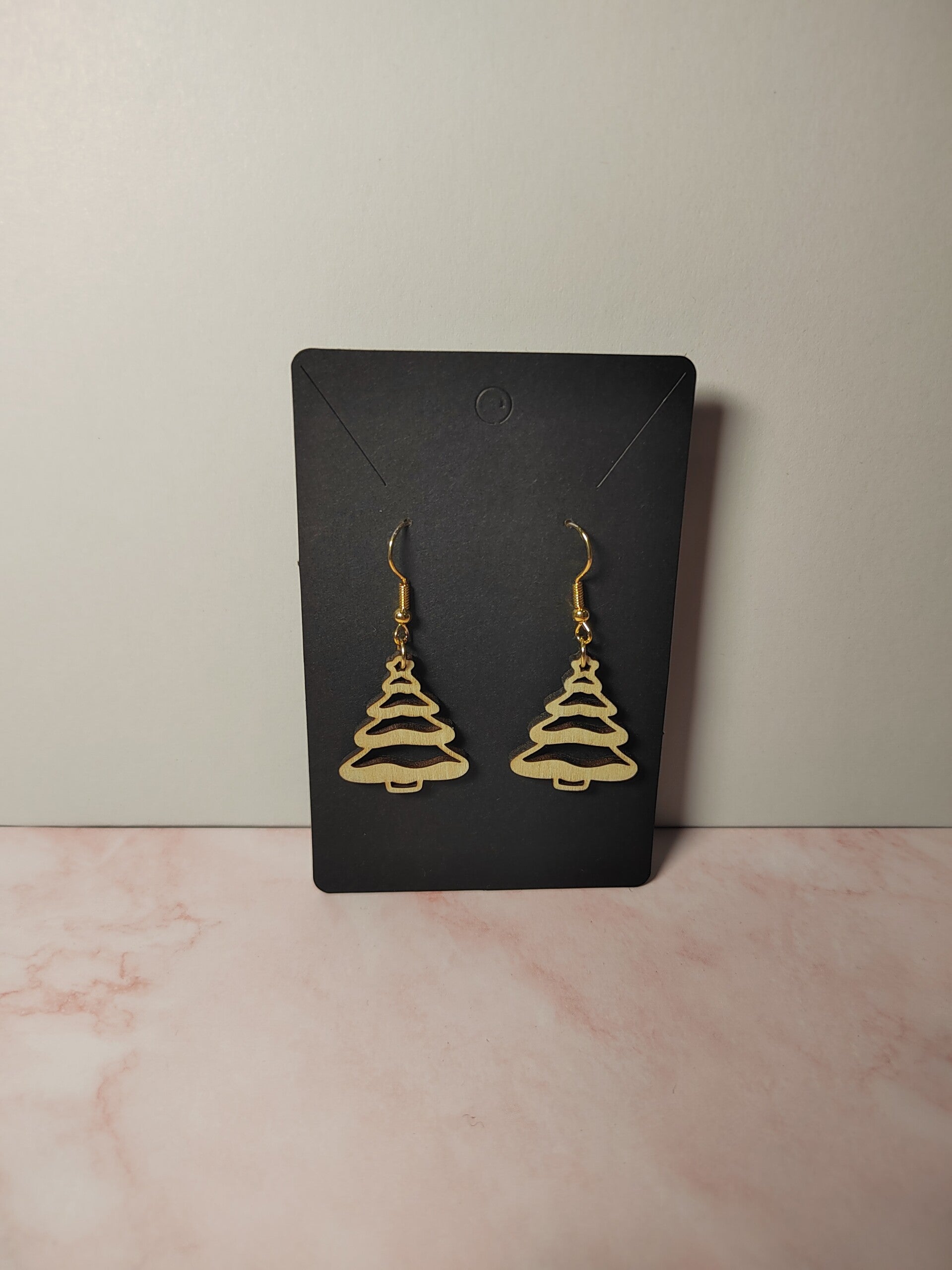 Boucles d'oreilles Bois et crochet inox revetu or, hauteur 3cm